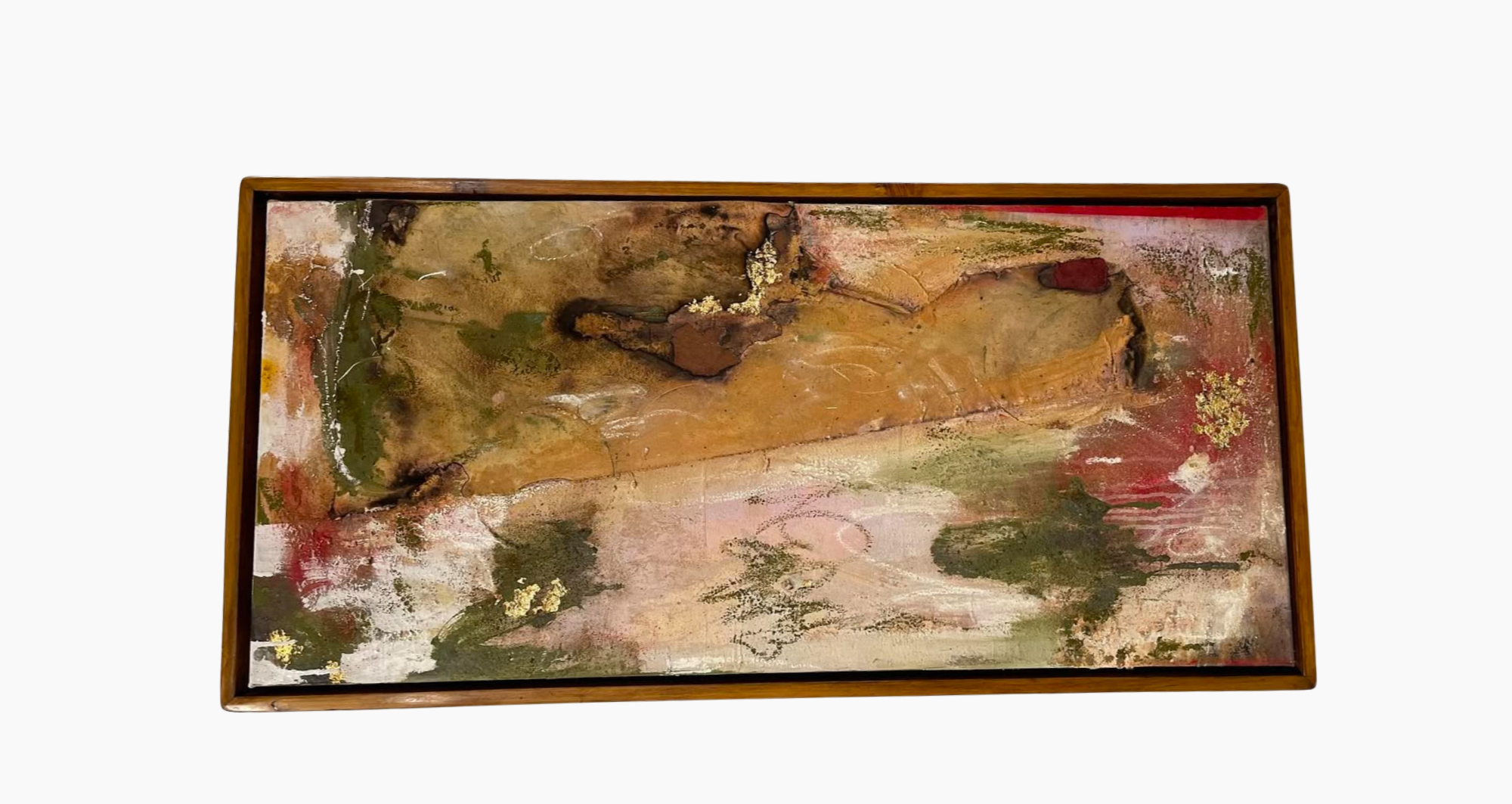 Mixed Media made on stretched canvas, sawdust, acrylic, oil pastels, and enamel paint