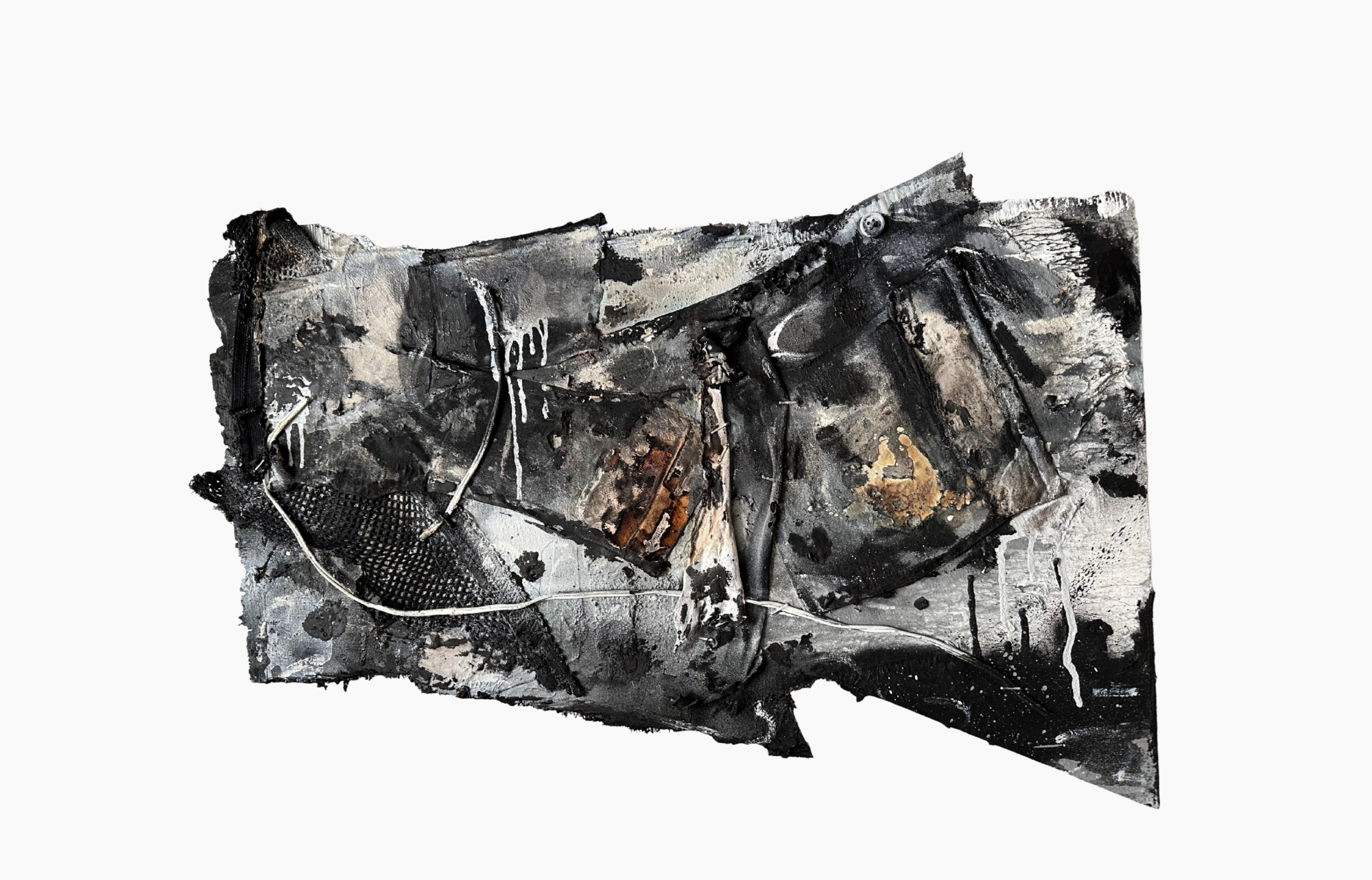 Mixed Media built from reclaimed wood, speaker wires, repurposed clothing, paper, acrylic, spray paint and oil pastels